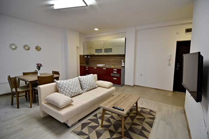 Апартамент 25 разполага с всекидневна, кухня и трапезария с отворен план. В кухнята ще намерите всичко необходимо за приготвянето на вашия обяд или вечеря, както и прибори за сервиране, кана с вода и хладилник. В спалнята ви очаква удобно двойно легло, което може да бъде разделено и на две единични. Терасата с гледка към пешеходната зона ще е и подходящо място, на което да се насладите на чистия въздух.